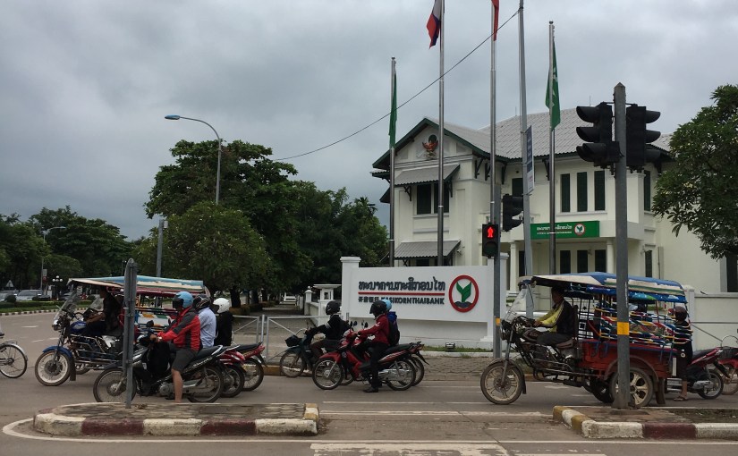 Riding a bike home to my little apartment surrounded by tuk-tuks, SUVs, and motorcycles without getting run off the road was a major accomplishment. Then I figured out where the little supermarket was and how to load up groceries into my backpack. Water is really heavy. Yesterday I met with Ministry of Education officials and didn’t understand 99% of what was being said. I need to learn Lao. But I looked good in a long traditional silk skirt that I borrowed from another American woman and had ironed by the lady who cleans the apartments. She also helped me figure out how to put it on. I’m pretty good at speaking via gestures – what would you expect from a lifelong English language teacher?