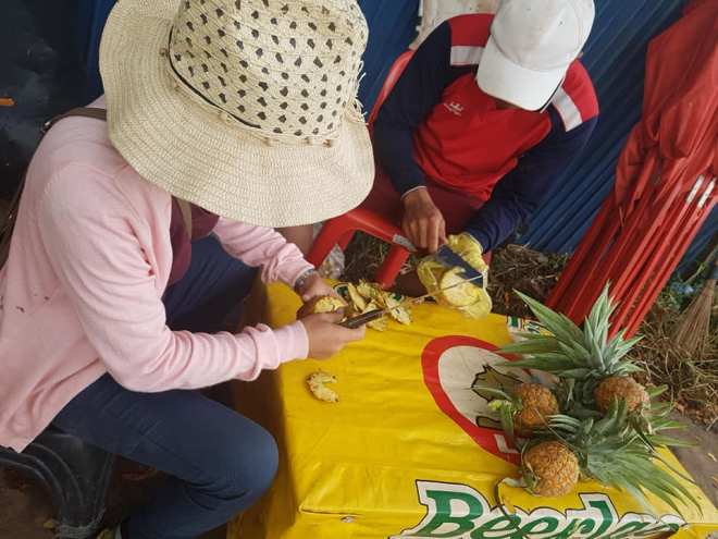 Peeling pineapples